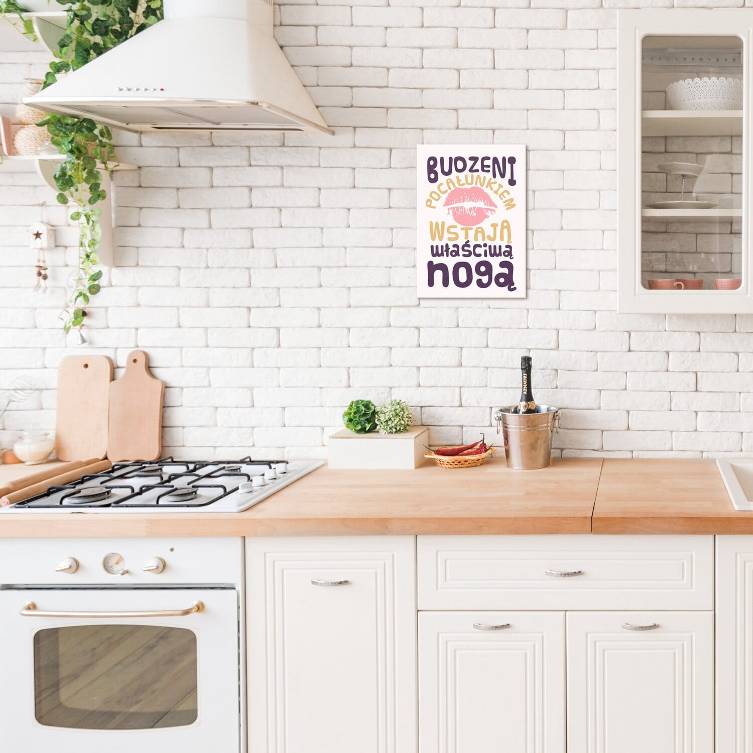 Kuchni, która wśród wszystkich domowych pomieszczeń jest rodzinnym centrum spotkań. Warto, aby obrazy w kuchni inspirowały i motywowały do podejmowania codziennych wyzwań, a także wprowadzały w nasze życie odrobinę humoru.