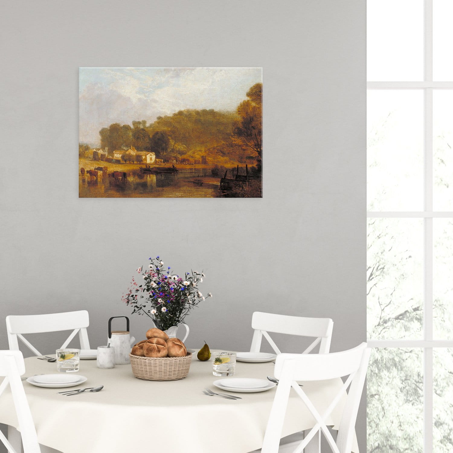 Jadalni, która jest miejscem zarówno codziennych jak i bardziej uroczystych spotkań rodzinnych. Grafiki w tym pomieszczeniu mogą być stonowane i eleganckie, a także barwne i z charakterem.
