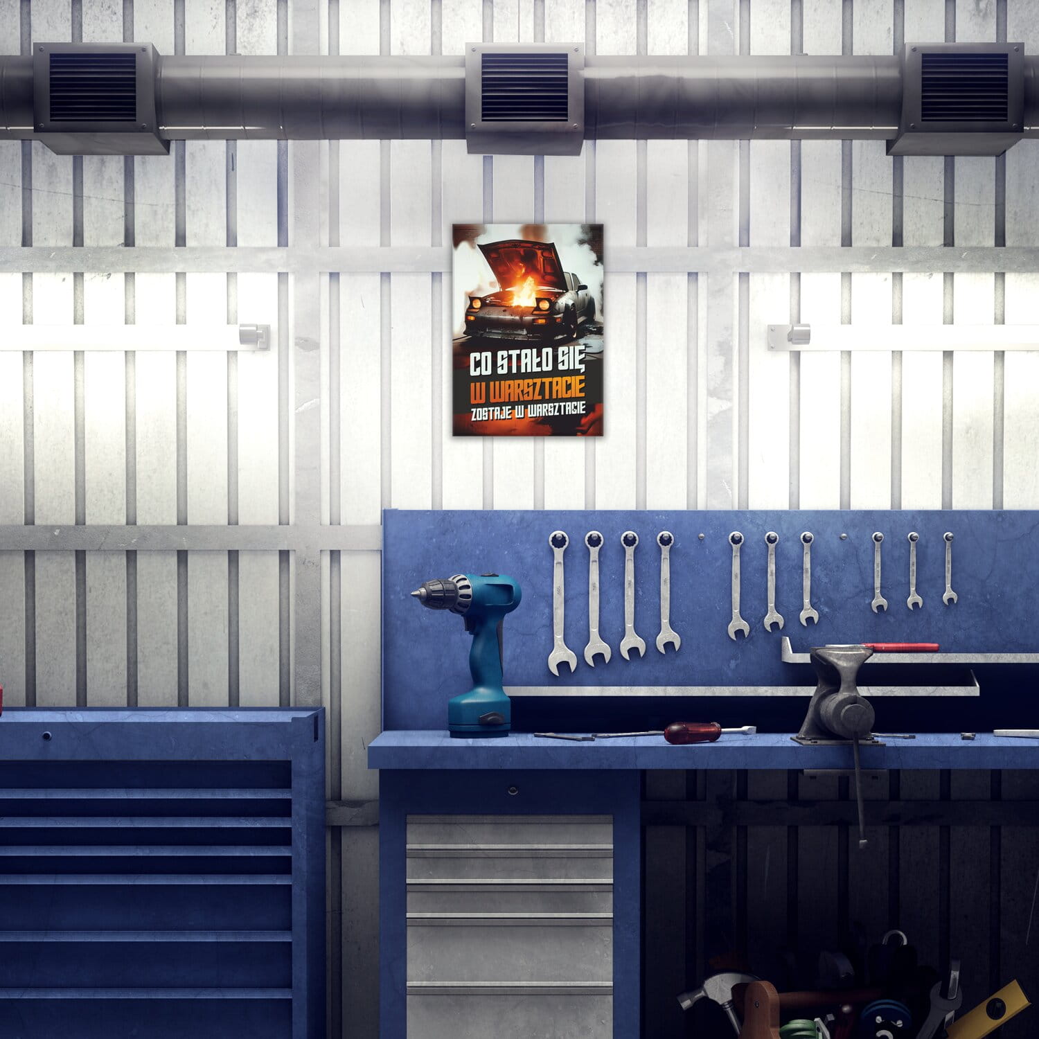 Co stało się w warsztacie Szyld metalowy