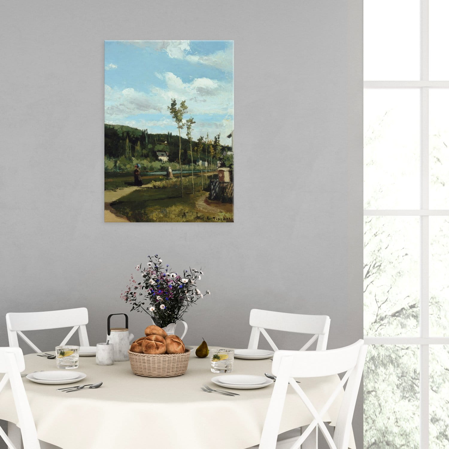 Jadalni, która jest miejscem zarówno codziennych jak i bardziej uroczystych spotkań rodzinnych. Grafiki w tym pomieszczeniu mogą być stonowane i eleganckie, a także barwne i z charakterem.