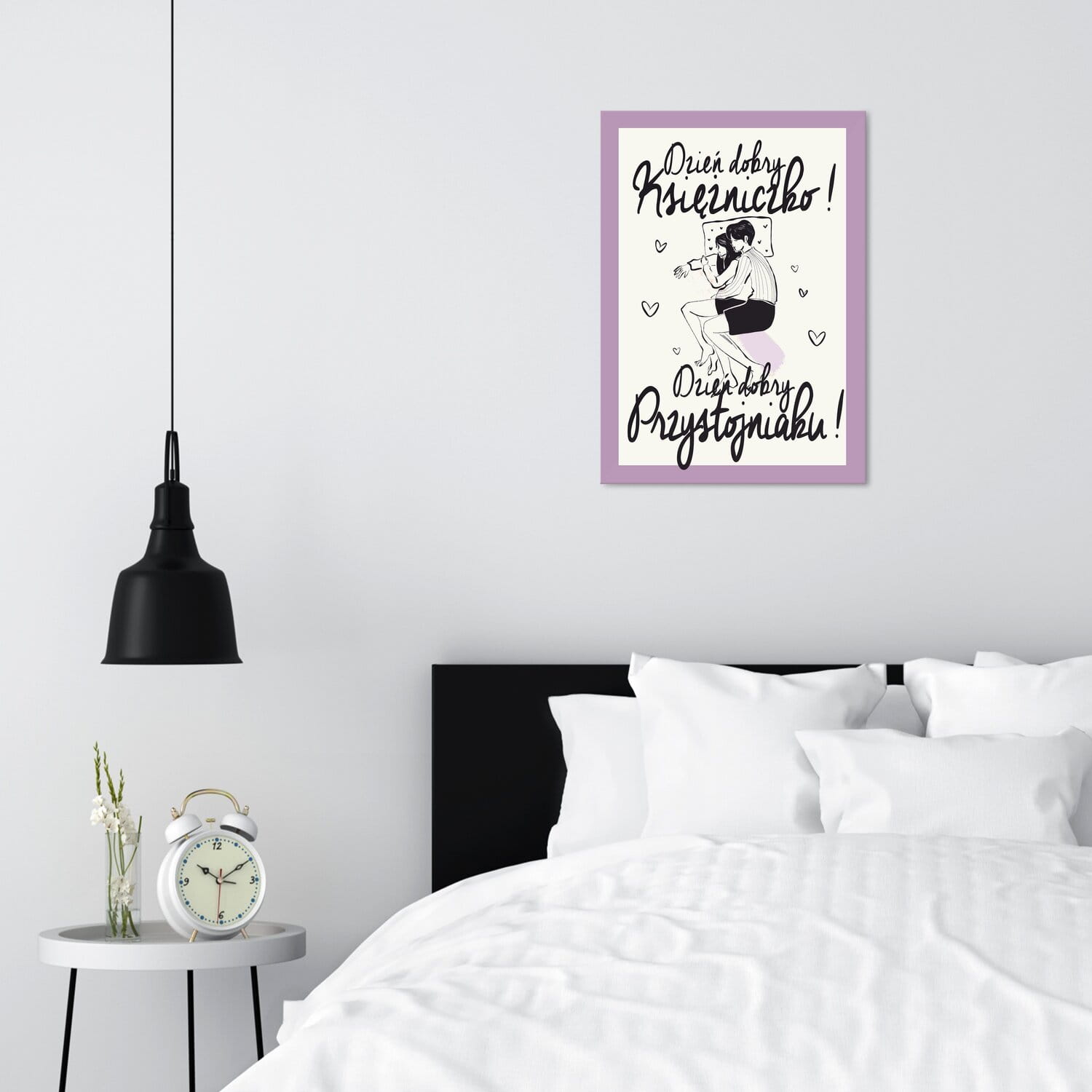 Sypialni, niezmiennie kojarzącej się ze spokojem, odpoczynkiem i wyciszeniem. Dobrze jest, gdy obrazy tam umieszczane wprowadzają w błogi nastrój i pozytywnie nastawiają do życia. A może, wręcz przeciwnie, ciekawym pomysłem będzie zwariowany plakat z humorem?