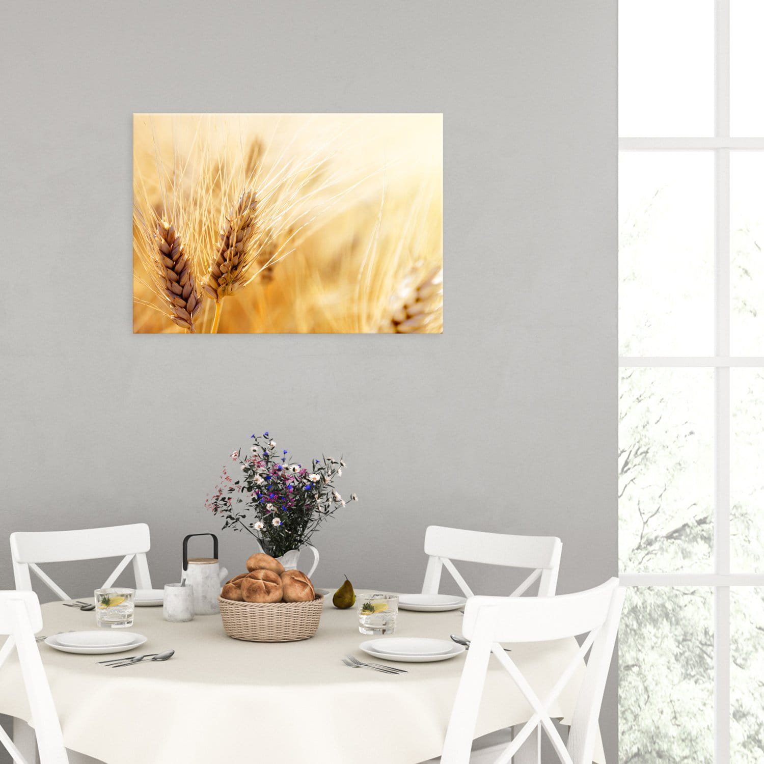Jadalni, która jest miejscem zarówno codziennych jak i bardziej uroczystych spotkań rodzinnych. Grafiki w tym pomieszczeniu mogą być stonowane i eleganckie, a także barwne i z charakterem.