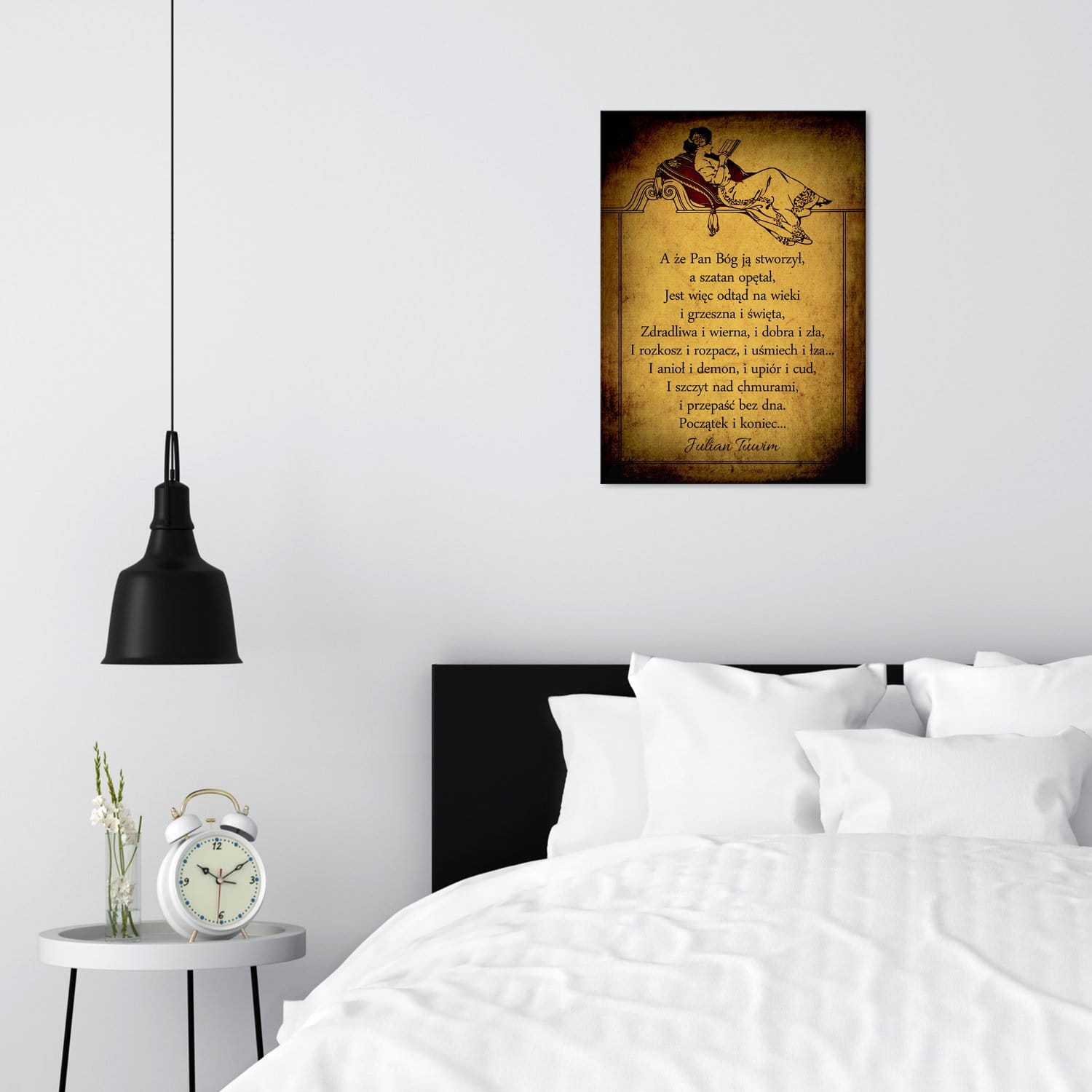 Sypialni, niezmiennie kojarzącej się ze spokojem, odpoczynkiem i wyciszeniem. Dobrze jest, gdy obrazy tam umieszczane wprowadzają w błogi nastrój i pozytywnie nastawiają do życia. A może, wręcz przeciwnie, ciekawym pomysłem będzie zwariowany plakat z humorem?