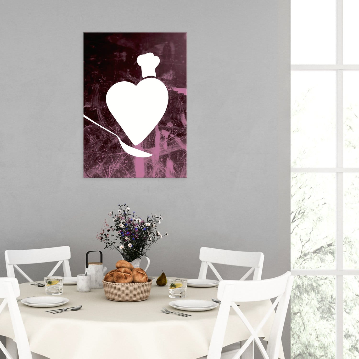 Jadalni, która jest miejscem zarówno codziennych jak i bardziej uroczystych spotkań rodzinnych. Grafiki w tym pomieszczeniu mogą być stonowane i eleganckie, a także barwne i z charakterem.