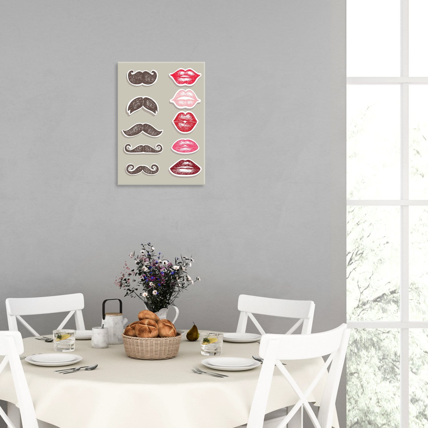 Jadalni, która jest miejscem zarówno codziennych jak i bardziej uroczystych spotkań rodzinnych. Grafiki w tym pomieszczeniu mogą być stonowane i eleganckie, a także barwne i z charakterem.