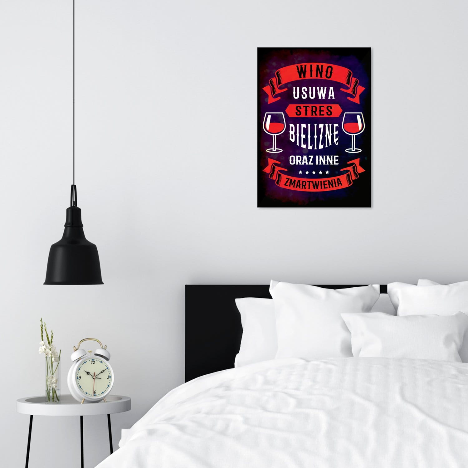Sypialni, niezmiennie kojarzącej się ze spokojem, odpoczynkiem i wyciszeniem. Dobrze jest, gdy obrazy tam umieszczane wprowadzają w błogi nastrój i pozytywnie nastawiają do życia. A może, wręcz przeciwnie, ciekawym pomysłem będzie zwariowany plakat z humorem?