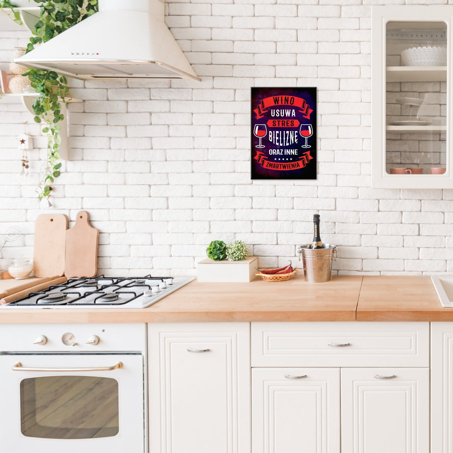 Kuchni, która wśród wszystkich domowych pomieszczeń jest rodzinnym centrum spotkań. Warto, aby obrazy w kuchni inspirowały i motywowały do podejmowania codziennych wyzwań, a także wprowadzały w nasze życie odrobinę humoru.