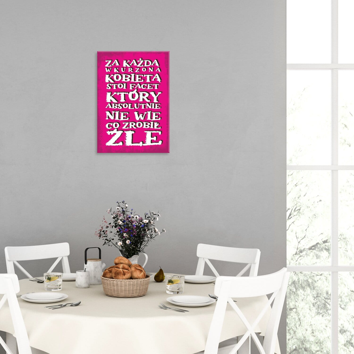 Jadalni, która jest miejscem zarówno codziennych jak i bardziej uroczystych spotkań rodzinnych. Grafiki w tym pomieszczeniu mogą być stonowane i eleganckie, a także barwne i z charakterem.