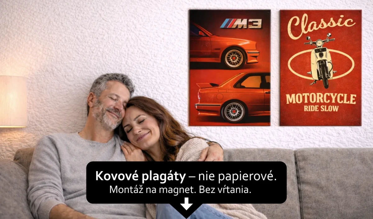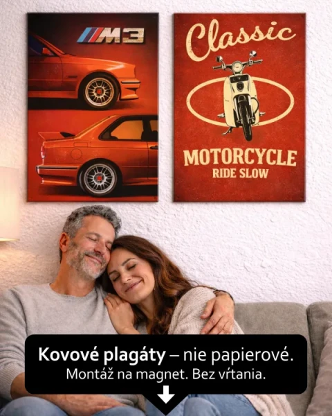 Plechové postery sú horúcim trendom v interiérovom dizajne, inšpirované retro štýlom. V kombinácii s modernou grafikou a sýtymi farbami predstavujú ikonu štýlu fusion. Ak máte radi klasiku v modernom poňatí, naše kovové obrazy efektne doplnia váš interiér. Ak si neviete vybrať konkrétny poster na stenu, nemusíte sa obmedzovať len na jeden. Z našej širokej ponuky si ľahko vyberiete viacero motívov, ktoré sa buď dopĺňajú, alebo kontrastujú – môžete ich potom kombinovať do triptychu alebo iných zoskupení. Holé steny tak upravíte rýchlo a jednoducho – a vytvoríte originálny priestor, ktorý najlepšie vystihne charakter domácnosti.